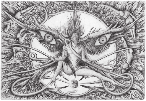 Created in a moment of deep emotional intensity that ultimately became a catalyst for liberation, this work explores the threshold between darkness and illumination. A watching presence sends streams of light into the depths of the subconscious, inspired by lucid dream states where boundaries between dream and reality dissolve. The mandala emerges as a symbol of freedom, a release from conformity and conventional modes of expression.